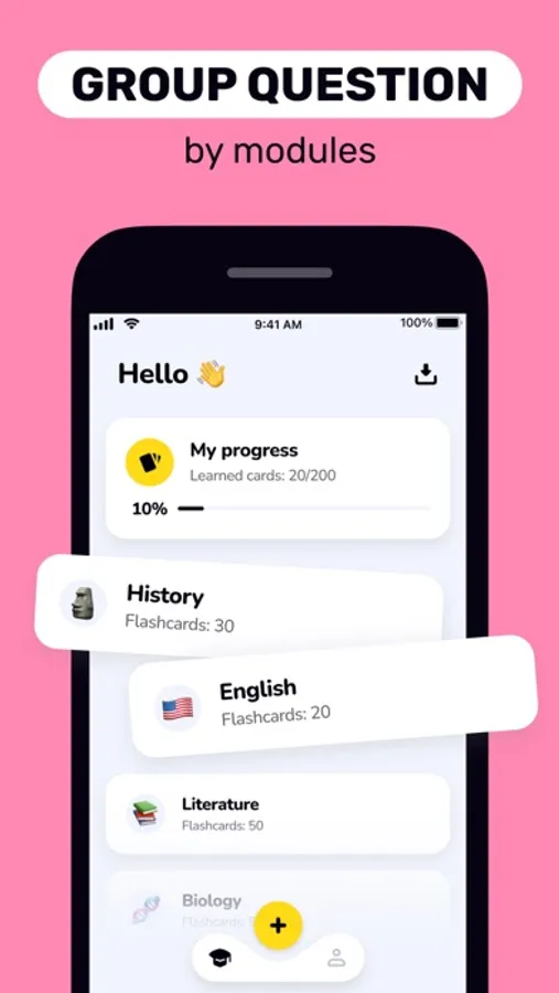 Group questions into modules and add to « Selected » cards that you should pay more attention to.