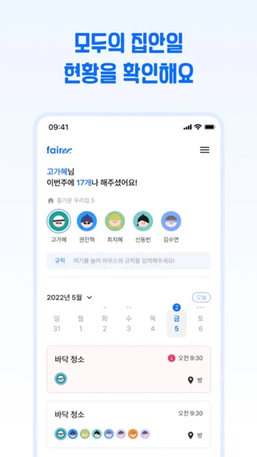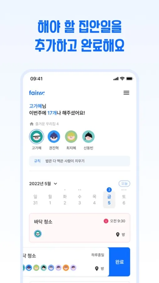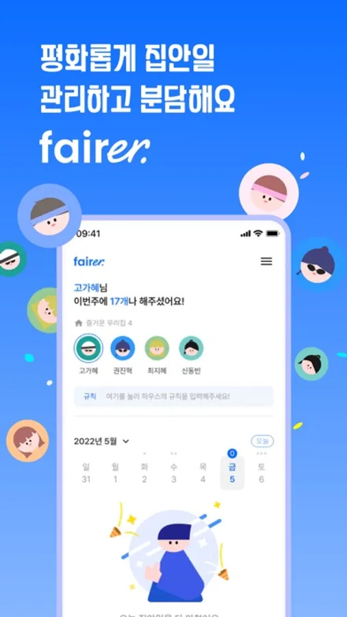 Fairer는 집안일을 쉽게 관리할 수 있도록 돕는 서비스입니다.