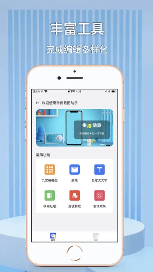 微尚截图助手是一款帮助你解决图片编辑和拼接合成的应用.可以九宫格拼接和自定义文字.