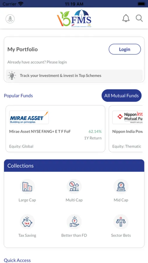 VBFMS offers a comprehensive solution for all your Wealth Management requirements, serving as a one-stop app. It empowers you to efficiently manage your Complete Financial Portfolio, comprising various assets such as Mutual Funds, Equity Shares, Bonds, Fixed Deposits, PMS, and Insurance.