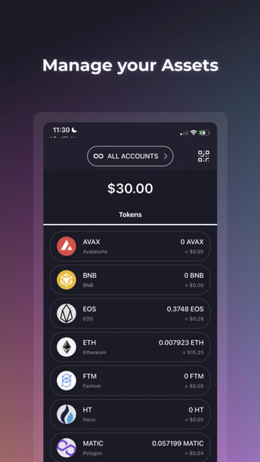 - Create and manage your own wallet and blockchain accounts in seconds.