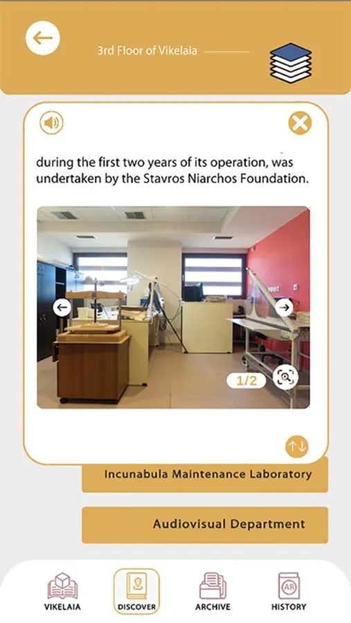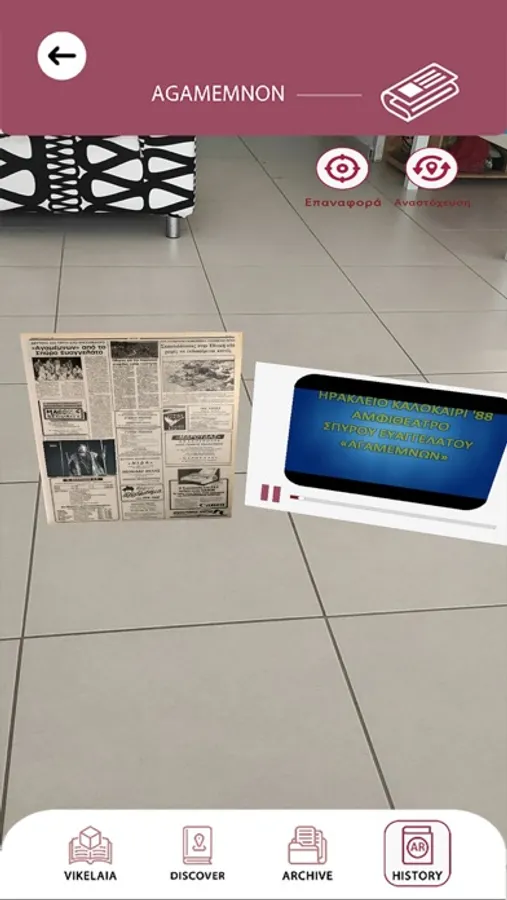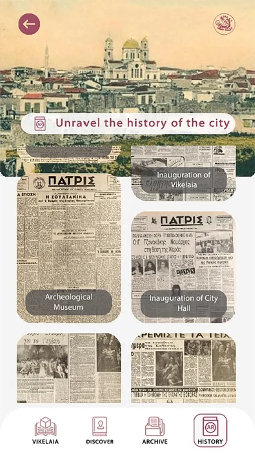 Through the application, the visitor is given the opportunity to browse the sites of Vikelaia and have a first acquaintance with its historical archive and especially with the Archive of newspapers and magazines. The application presents information and other multimedia elements in an innovative way with the technology of augmented reality.