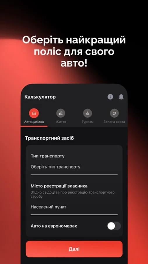 Швидко. Оформіть автоцивілку всього за кілька хвилин. Скористайтесь зручним вбудованим калькулятором, щоб обрати найкращу пропозицію від представлених страхових компаній. Ми запитуємо лише ті дані, які необхідні для розрахунку Полісу ОСЦПВ та оформлення договору страхування.