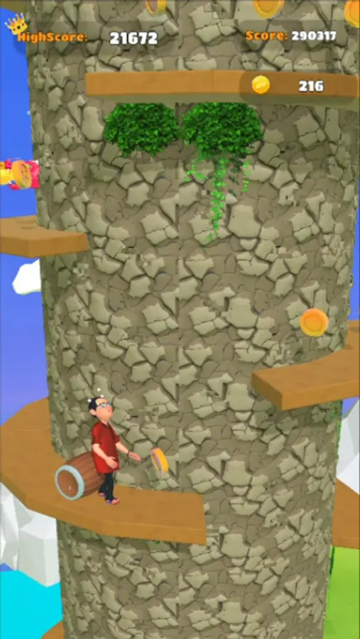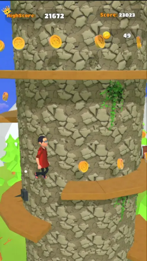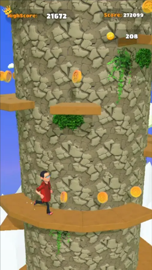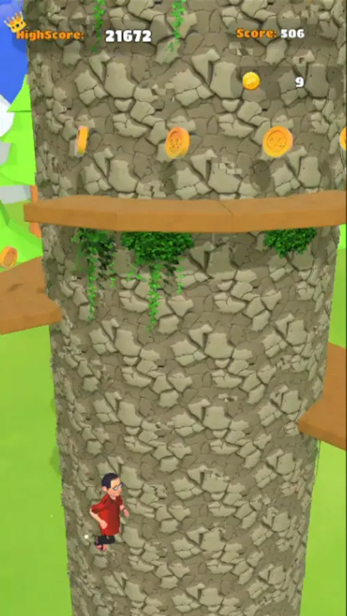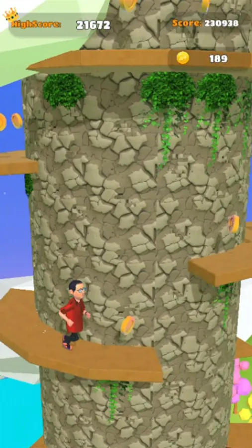 The main objective of the game is to ascend the rotating tower by jumping from one platform to another. These platforms are strategically placed at varying distances, challenging the player's timing and precision. To navigate through the tower, players must tap the screen to make Bhide jump. By double-tapping, Bhide can achieve higher jumps, allowing you to reach platforms that are farther apart.