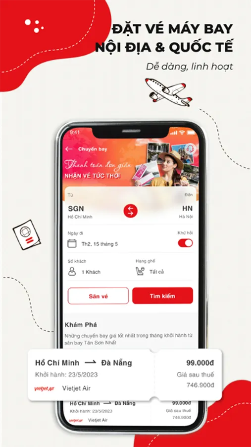 - Đặt vé máy bay nhanh chóng, dễ dàng