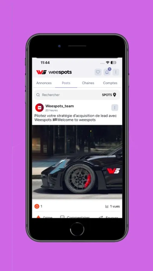 Weespots ne se limite pas à une marketplace ordinaire; c'est un véritable réseau social 100% auto, où partager vos expériences devient un jeu d'enfant. Captivez et soyez captivé par des contenus média partagés par une communauté de passionnés comme vous. Exprimez-vous, échangez des conseils, et laissez-vous transporter par les récits automobiles qui font battre votre cœur.