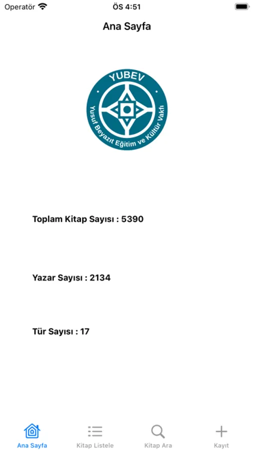 Uygulama toplam kitap sayısı,toplam yazar sayısı,toplam tür sayısını göstermektedir.