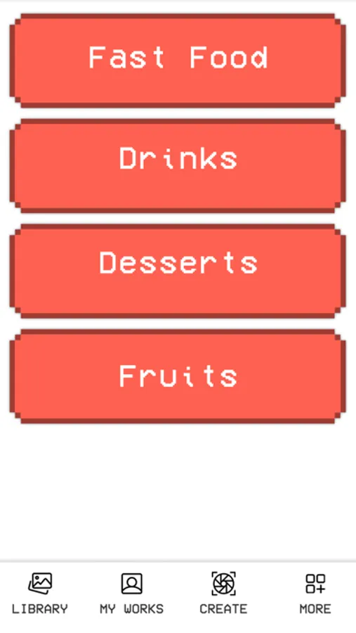 - 4 categories: Fast food, Drinks, desserts, and fruits
