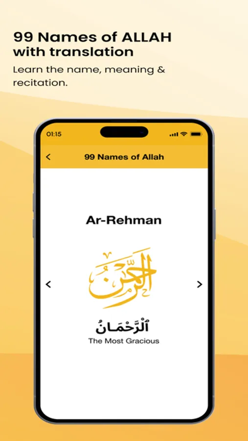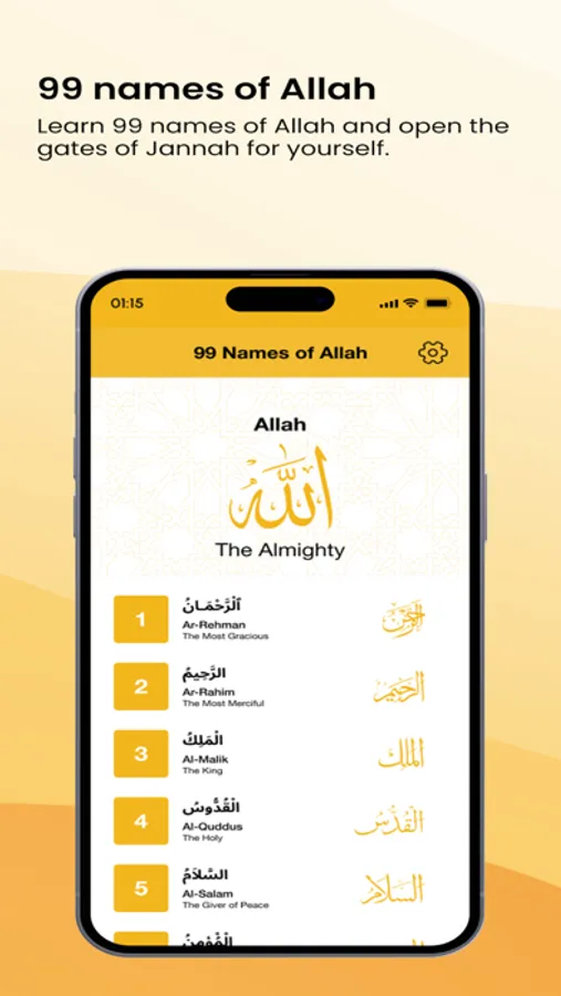 Our user-friendly interface and comprehensive features make it easy for anyone to embark on this meaningful endeavor. You can take your time to explore and comprehend the complete collection of ALLAH's 99 names, carefully curated for your spiritual growth.