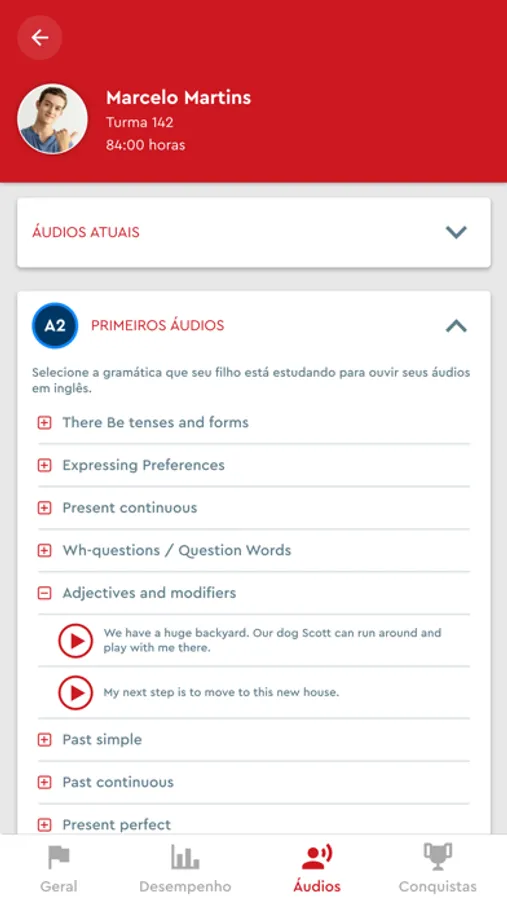 - Las conquistas de los alumnos¡Sepa lo que su hijo está estudiando en inglés y acompañe su progreso!