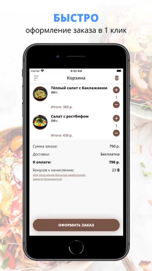 Скачивайте наше приложение, оформляйте заказ и наслаждайтесь любимой едой, где бы Вы ни были! Приятного аппетита!