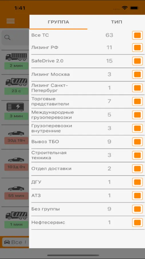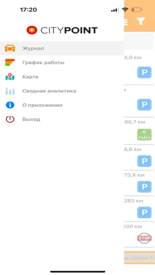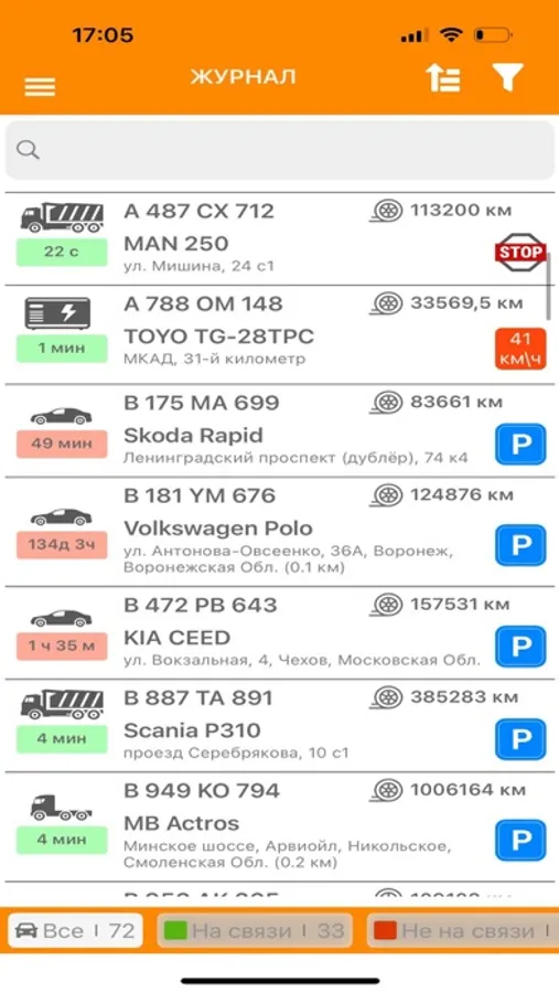 • «Журнал» - отображает списки техники, состояние движения, зажигания и данные в режиме реального времени.