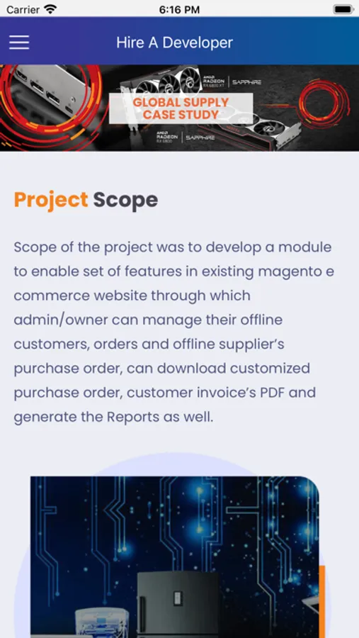 Hire a Developer: Our app also provides access to a dedicated team of Magento developers, offering flexible and tailored solutions for your iOS project.