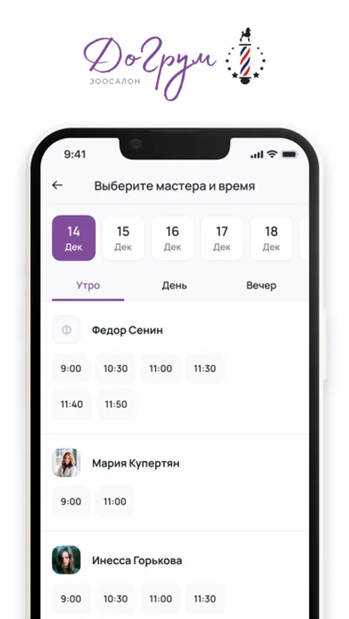 Простое бронирование записей: Запишитесь на груминг вашего питомца всего несколькими нажатиями. Выберите предпочитаемую дату, время и грумера, а приложение автоматически отправит вам уведомление с подтверждением записи.