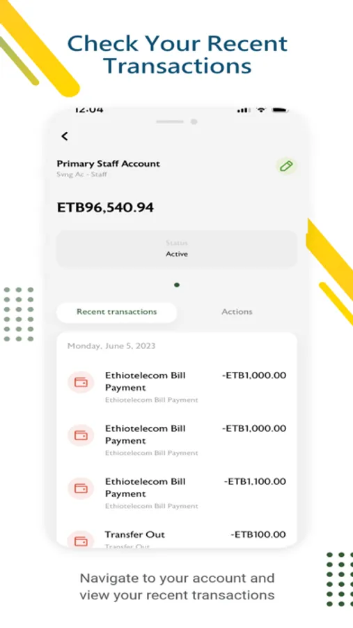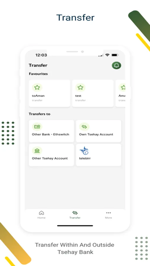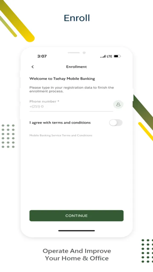 Tsehay Mobile Banking app allows customer to self enroll after proper validation has been done from branch side, and let's the customer monitor their accounts, generate statements and perform transactions.