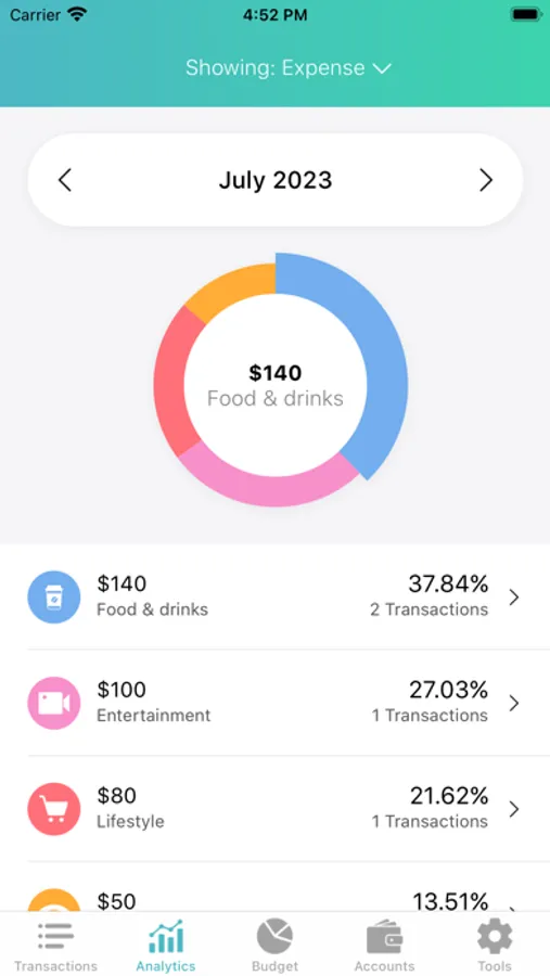 2. Analytics and Insights: Gain valuable insights into your spending habits with comprehensive analytics. Visualize your financial data through intuitive charts and graphs, allowing you to make informed decisions and set realistic financial goals.