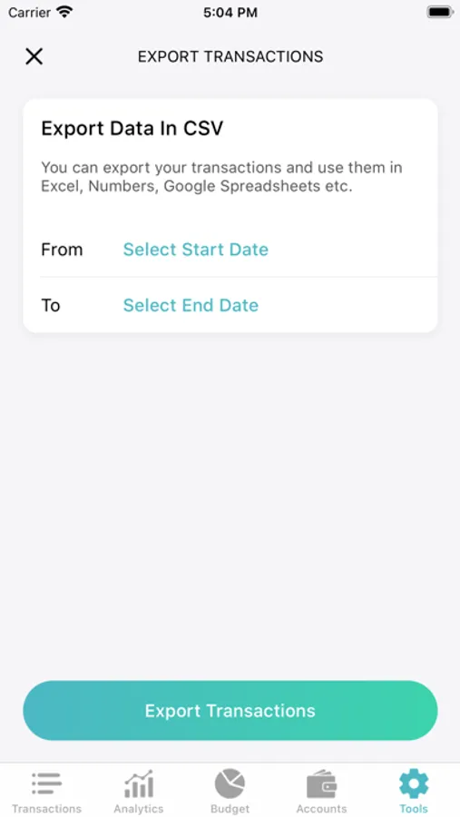 5. Export Transactions: Generate detailed financial reports and export transactions for accounting or personal records. Simplify tax preparation and maintain a clear overview of your financial history.
