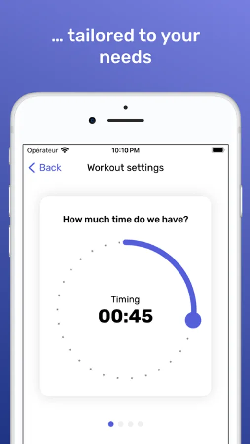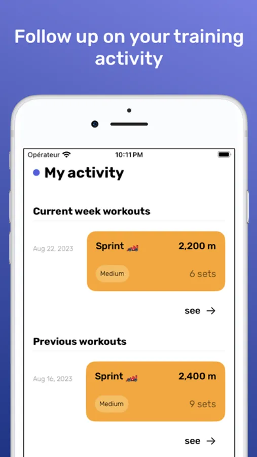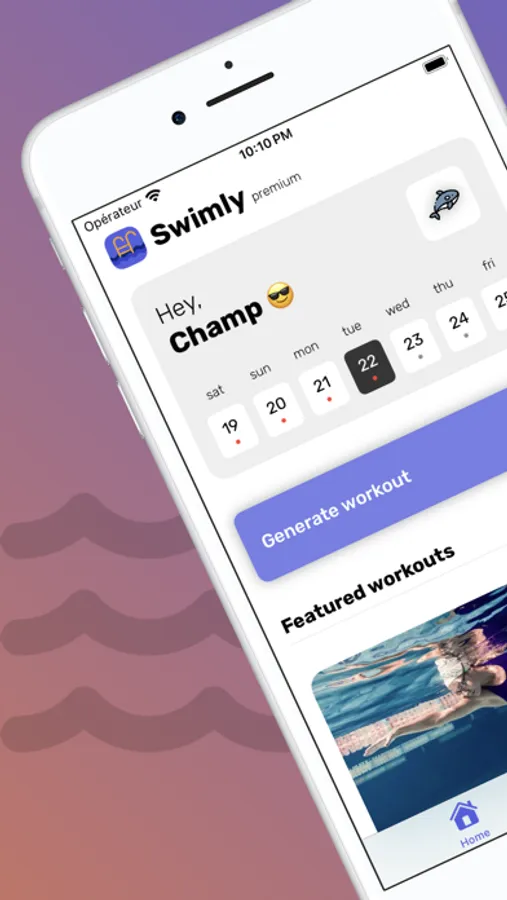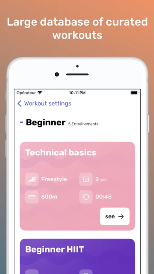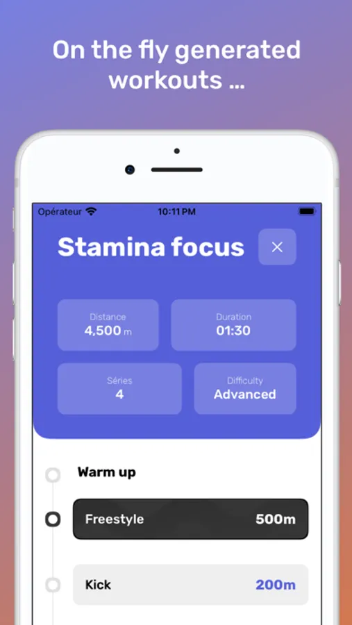 You can set parameters to the workout generator such as the time you have, the type of pool you swim in or the difficulty you like.