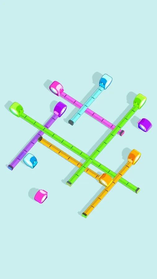 Tap on the measuring tapes in the correct order to untangle them! Pass the levels of this fun puzzle by clearing all the tapes!