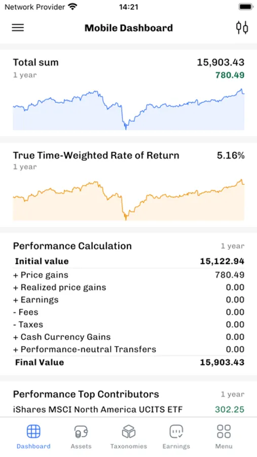 Track your investments. Confidentially. Portfolio Performance is the mobile companion for users of the popular free and open-source Portfolio Performance desktop application. This app is your gateway to tracking investments on the move, complementing the desktop version's capabilities. Edit and maintain your transaction history on the desktop, then view and analyze your investments on your device.