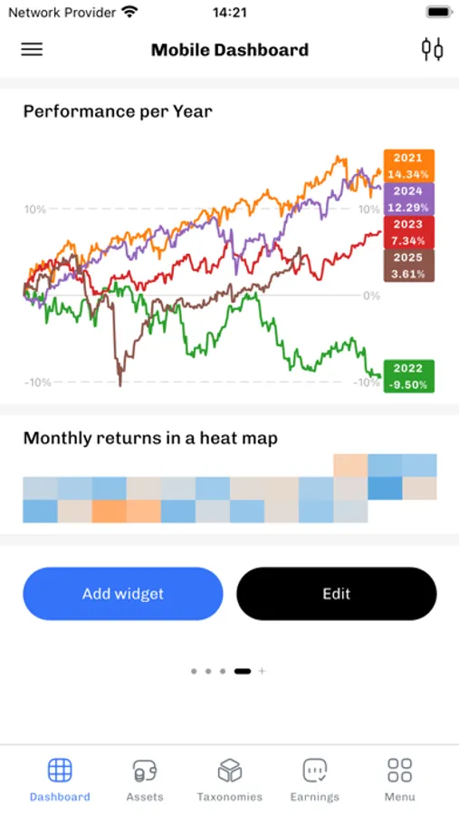 Portfolio Performance offers an optional 'Premium' subscription, which unlocks dashboards and supports future development of Portfolio Performance. With this subscription, you can view all dashboards created in the desktop application and also create and edit mobile dashboards, tailoring them to your specific information needs on the mobile screen.
