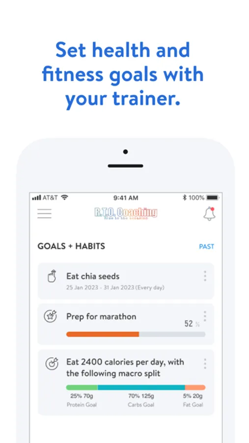 With the RTO COACHING App, you will have access to workout programs designed specifically to help you reach your fitness and health goals! You can follow & track your workouts, your nutrition, your lifestyle habits, measurements and results–all with the help of your coach.
