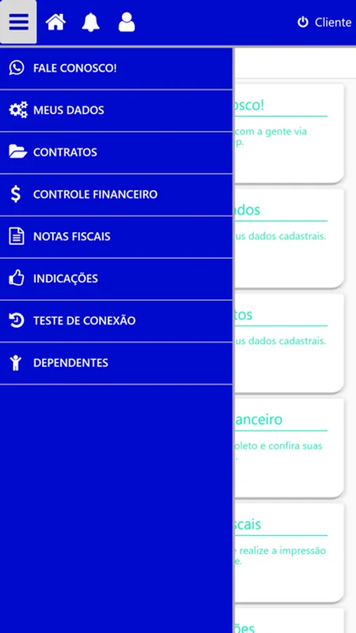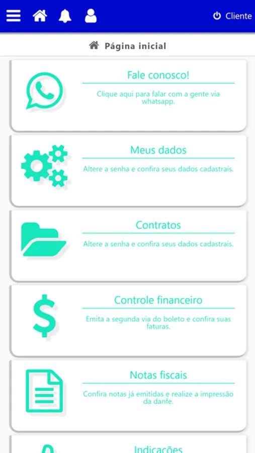 Com o aplicativo da área do cliente você poderá emitir seus boletos e recibos, receber notificações e avisos, abrir atendimentos e indicações, testar sua velocidade de conexão e muito mais.