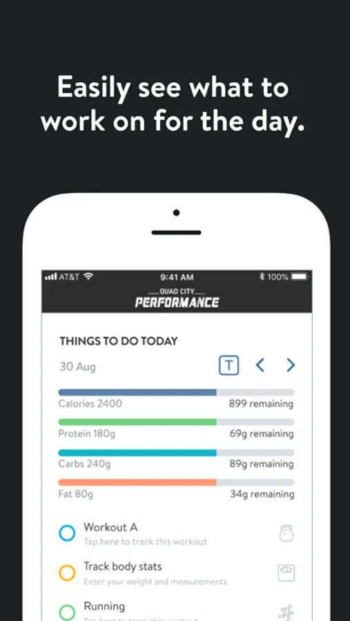 With the Quad City Performance App, you will have access to workout programs designed specifically to help you reach your fitness and health goals! You can follow & track your workouts, your nutrition, your lifestyle habits, measurements and results–all with the help of your coach.
