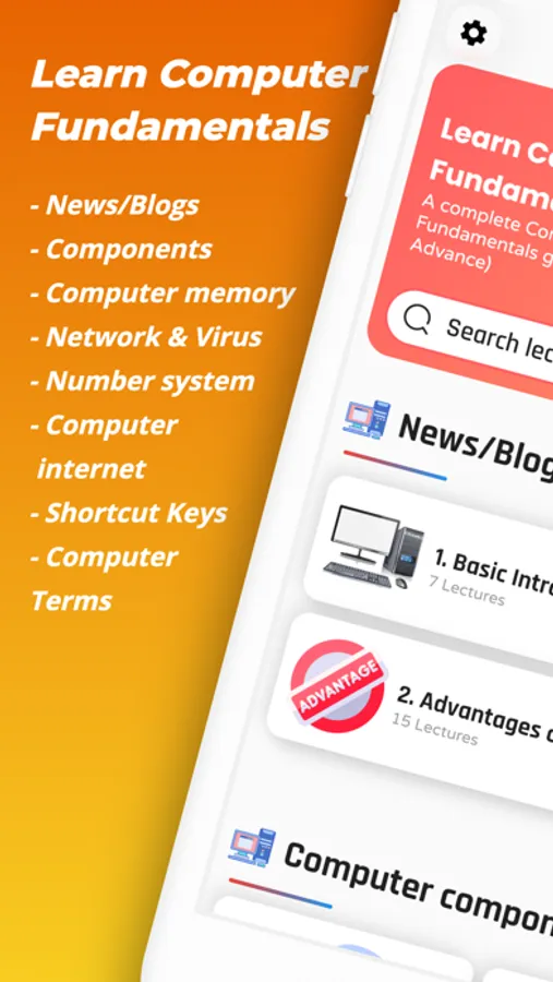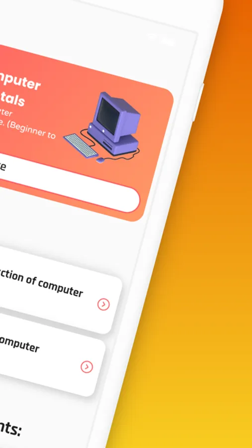 Study of basic computer types to their characteristics, advantages, and disadvantages are included in the Learning of fundamentals of computers.