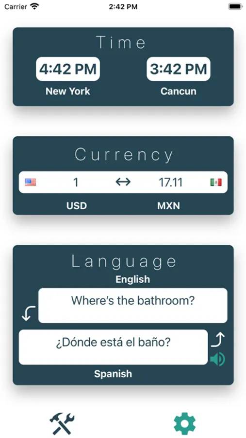 Language Translation: Speak like a local! Translate between your chosen countries' languages. Click to speak the translation for easy communication.