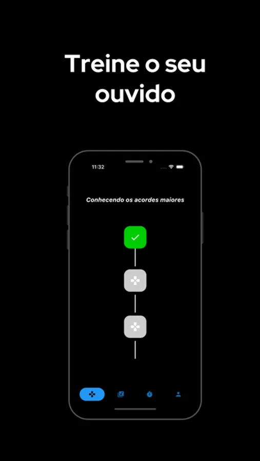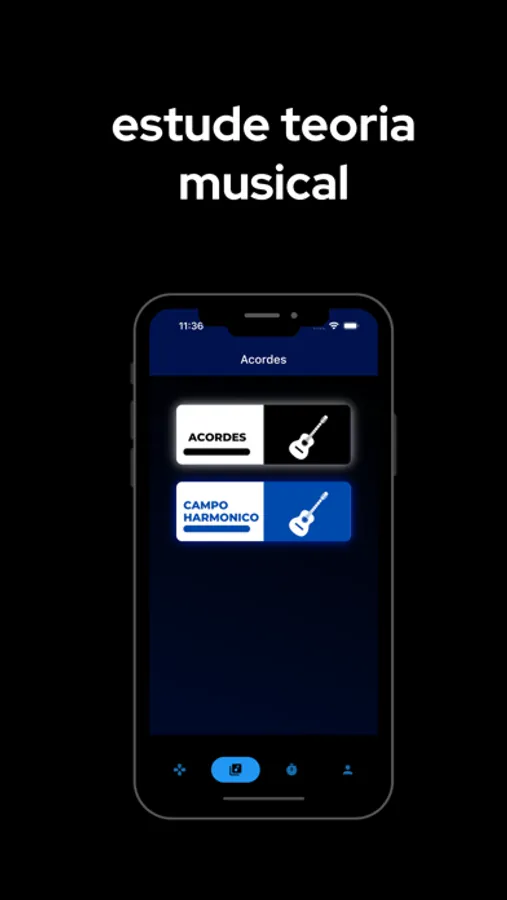 Nosso app tem como objetivo ajudar no seu desenvolvimento musical, tornando o processo mais divertido