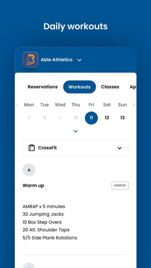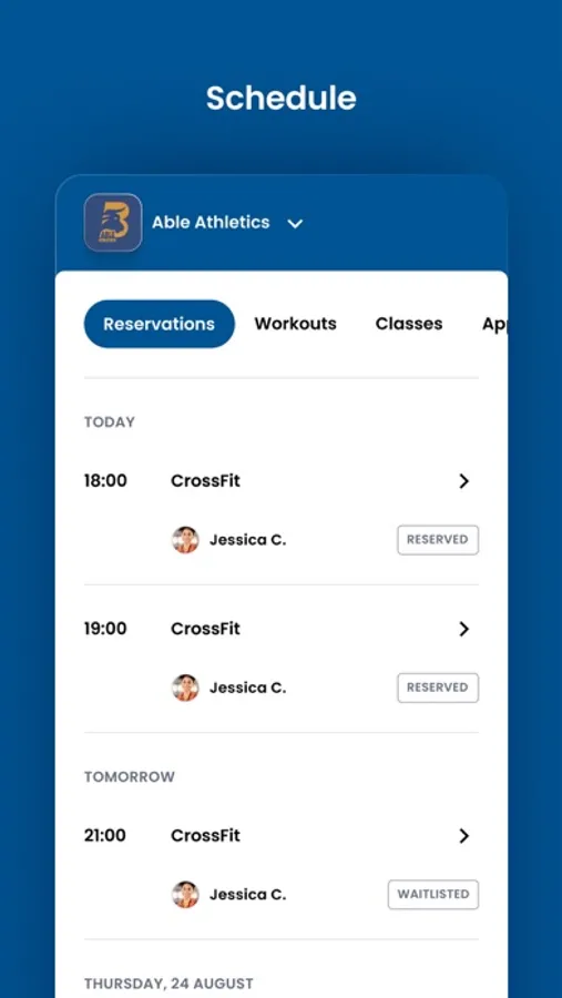 For members of Able Athletics to reserve their place in a class, sign up for gym events, and general account management like updating headshots and credit card on file.