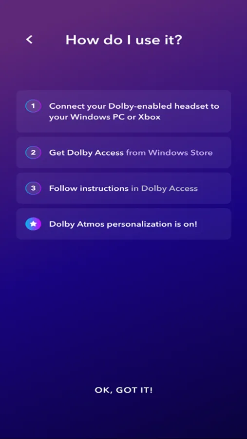 Traditional audio experiences over headphones are designed using generic head and body references, without considering the natural diversity of the human body. Dolby Personalization analyzes the unique shape of your ears, head, and shoulders, providing you with a custom personal profile tailored for you and your body.