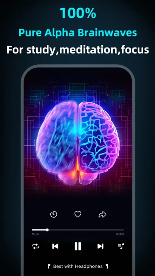 Our binaural beats are designed to stimulate your brain's natural frequency and promote positive changes in your mood, energy levels, and cognitive function. Our tracks range from Relaxation, Concentration, to Sleep, each with carefully selected frequencies that cater to your specific needs. We also offer a range of ambient music that includes Nature, piano and other soothing sounds, to further enhance your relaxation and sleep experience. Selected programs for Focus,Relaxation, Sleep, Meditation, Anxiety, Depression, Stress Relief, Positive Mind, Confidence, Memory, Healing, Brain Function, and much more!