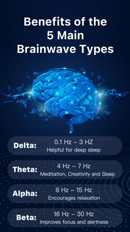 Delta Brainwave : 0.1 Hz - 3 HZ, This will help you have better deep sleep.