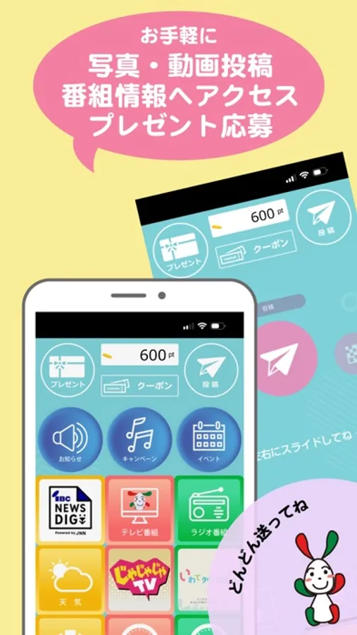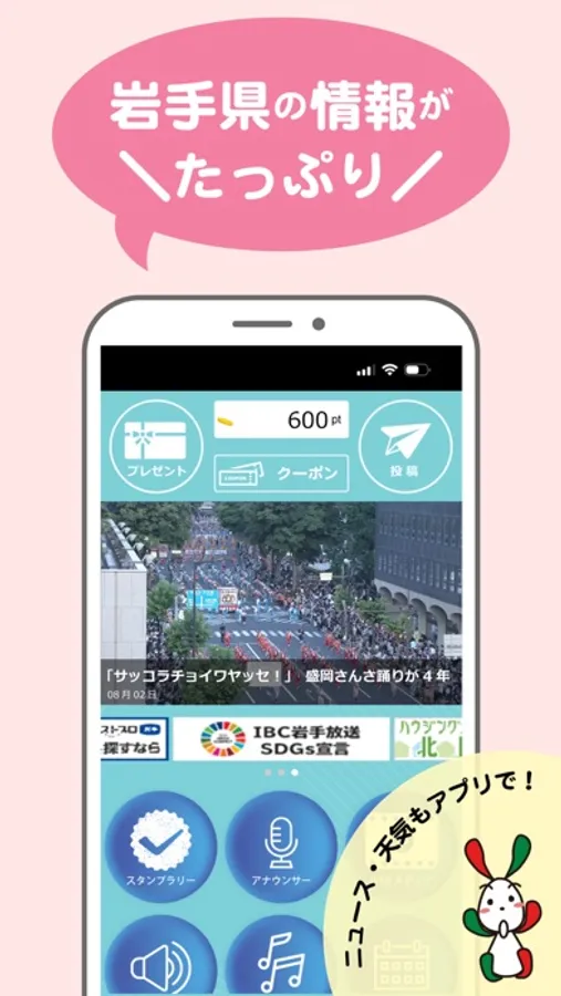IBC岩手放送の公式アプリがリニューアル。今までのニュース・天気・投稿機能に加え、クーポンが使えたり、ポイントをためるとオリジナルグッズがもらえます。プレゼントの応募もできる「お得で便利なIBCアプリ」です。