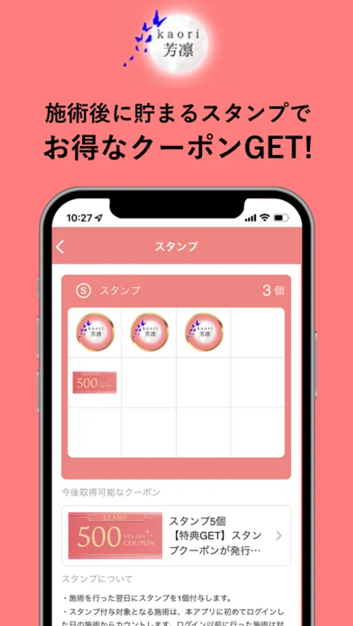 ご来店スタンプをためるとお得なクーポンが発行されます(ご利用条件がある場合がございます)