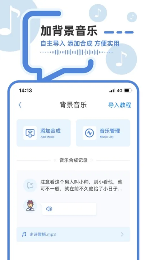 您不但可以一键导入你想要的背景音乐,还可以将它们按照你的需求进行合成,不同的文字配上不同的BGM,省事又方便