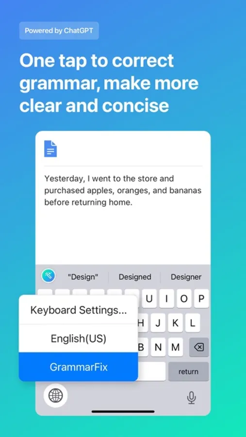 4. **Universal Integration**: GrammarFix integrates seamlessly into all your favorite apps. Whether you're emailing, texting, or drafting a social media post, GrammarFix works in the background to keep your writing on point.