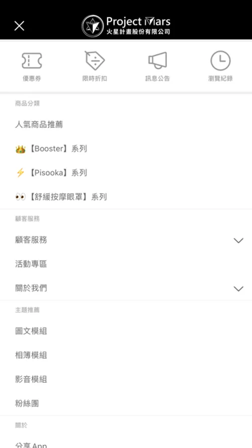 火星商城APP旨在提供忠實顧客優渥的購物點數回饋以及會員晉升系統,讓大家能第一時間買到公司自主研發的最新產品,以及購買聯名品牌時可以享有會員折扣跟點數累積。
