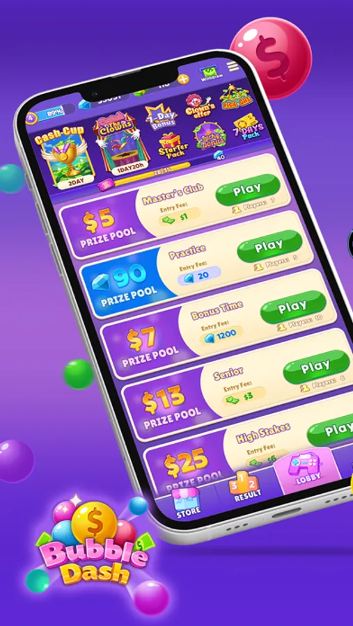 Download Bubble Dash and experience the thrill of popping bubbles and winning real money!