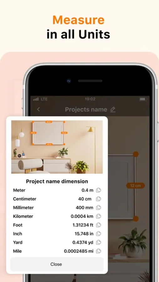One of the noteworthy features of AR Measure Tape is its multi-unit support. The app measures in many different units, catering to a global user base. Whether you're accustomed to the metric system (meters, centimeters) or prefer the imperial system (feet, inches). This ensures a customized and convenient measuring experience, making the app versatile and universally applicable. Whether you're planning home improvements, rearranging furniture, or working on a professional project, you can rely on AR Measure Ruler for accurate, easy-to-understand measurements in the units that make the most sense to you.