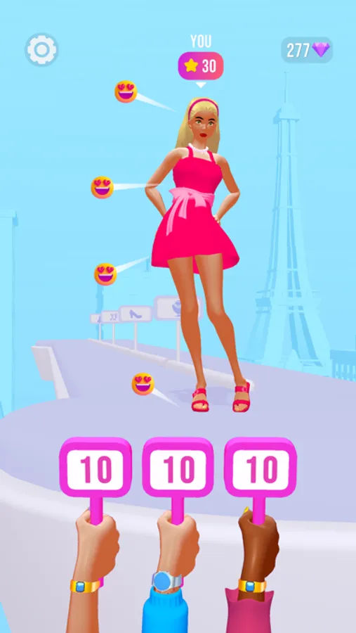 Your model will walk down the catwalk, showing off her fashion style to the judges and the audience. The better your outfit, the higher your score will be.