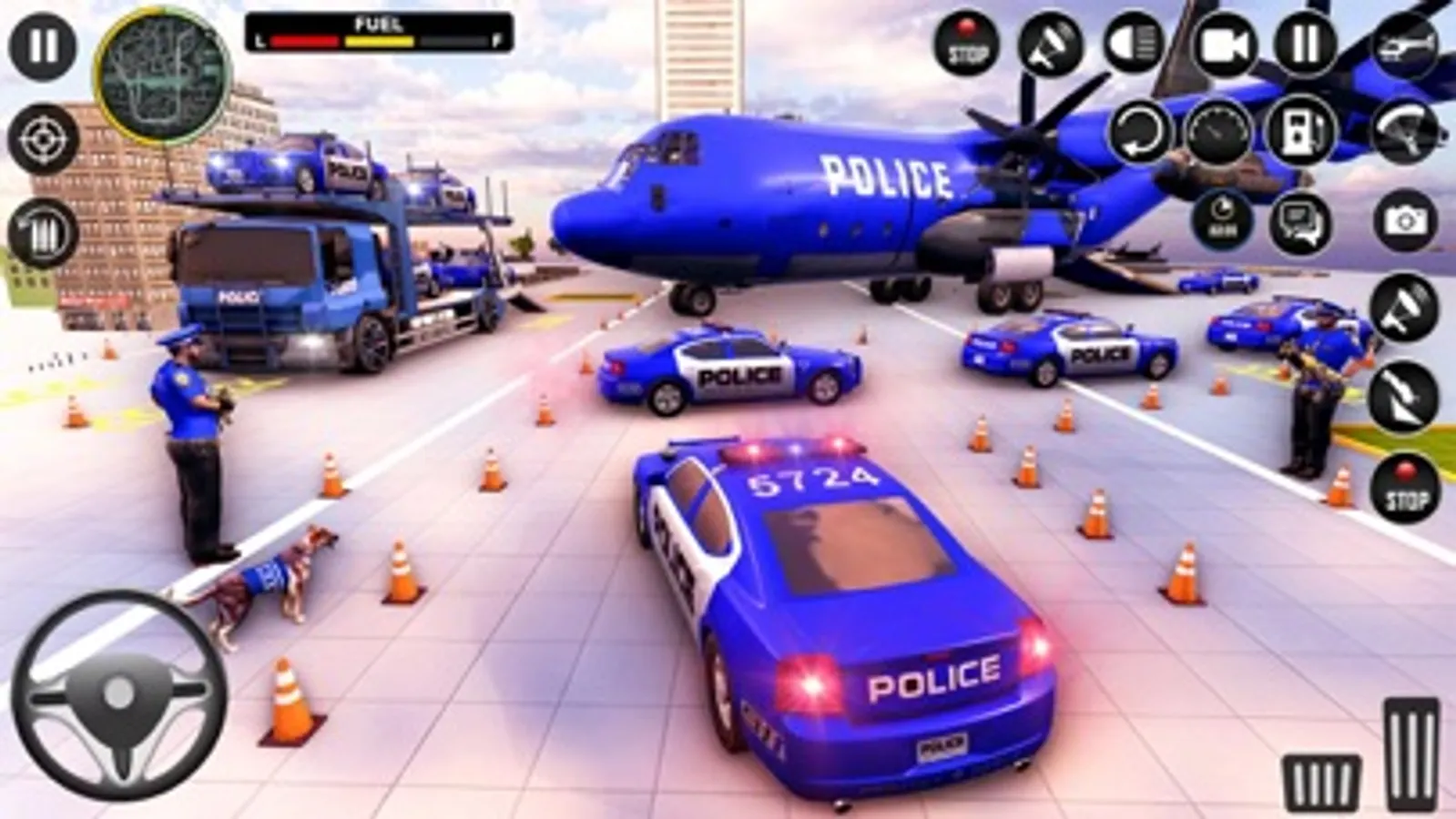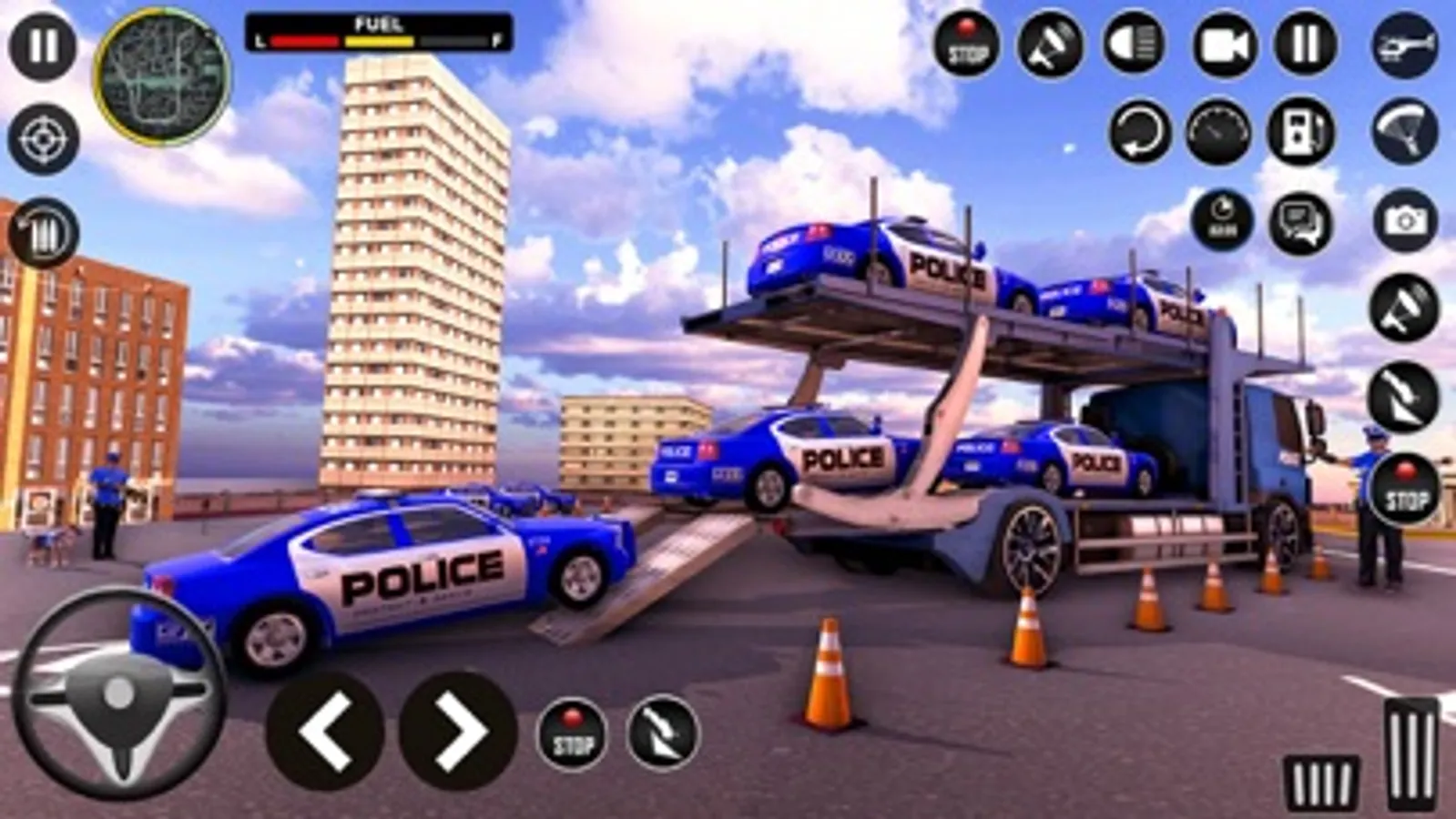 • Police cars are transferred from one location to another in this transport-themed driving game