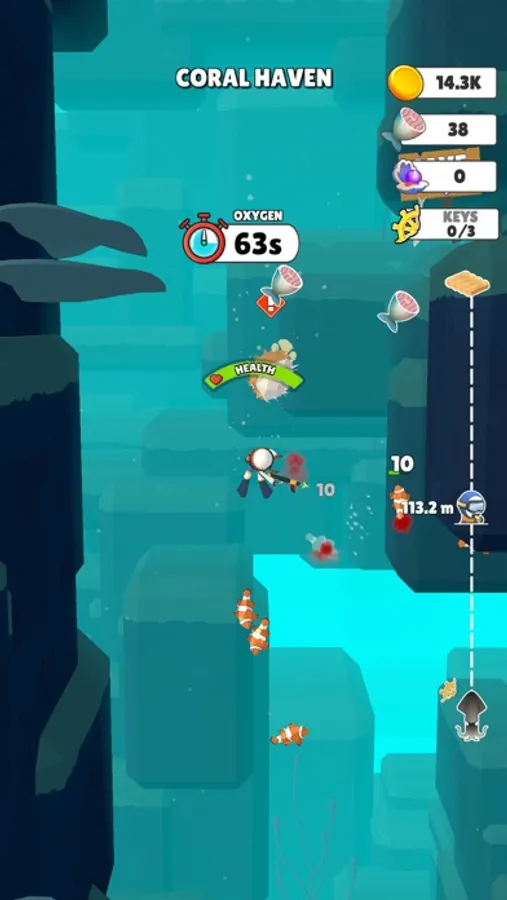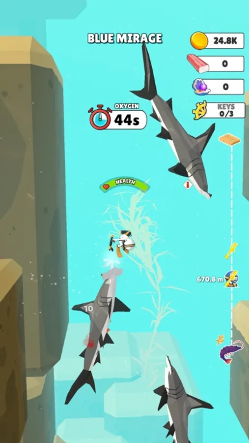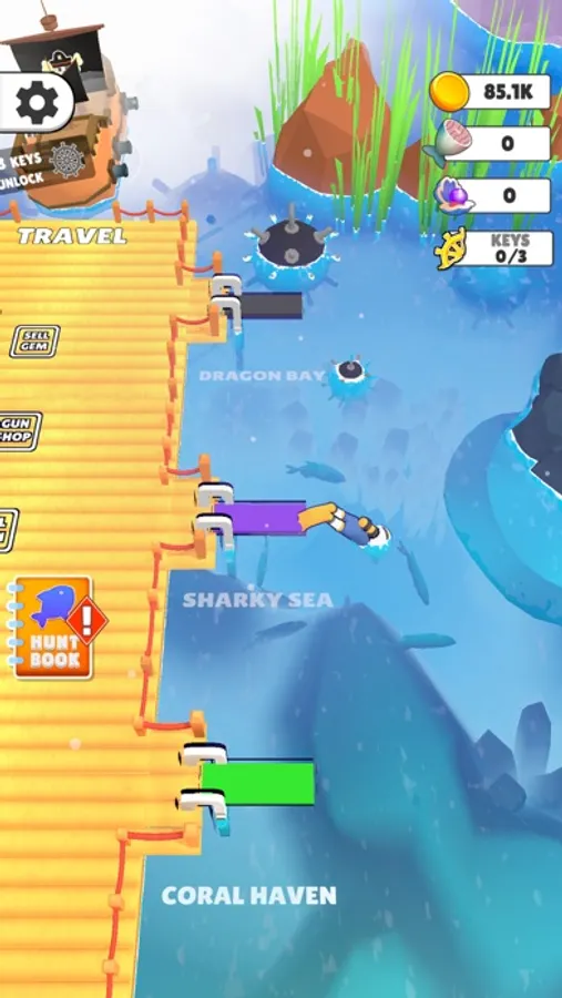 Welcome to an underwater kingdom filled with unseen dangers. Your harpoon not only serves as a defense, but also serves as the key to unleash your inner hunter!