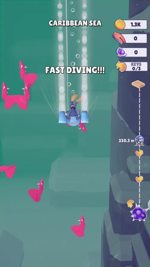 Experience the underwater world through the eyes of a hunter. Use your spear to track your prey and enjoy moments of adventurous pursuit.