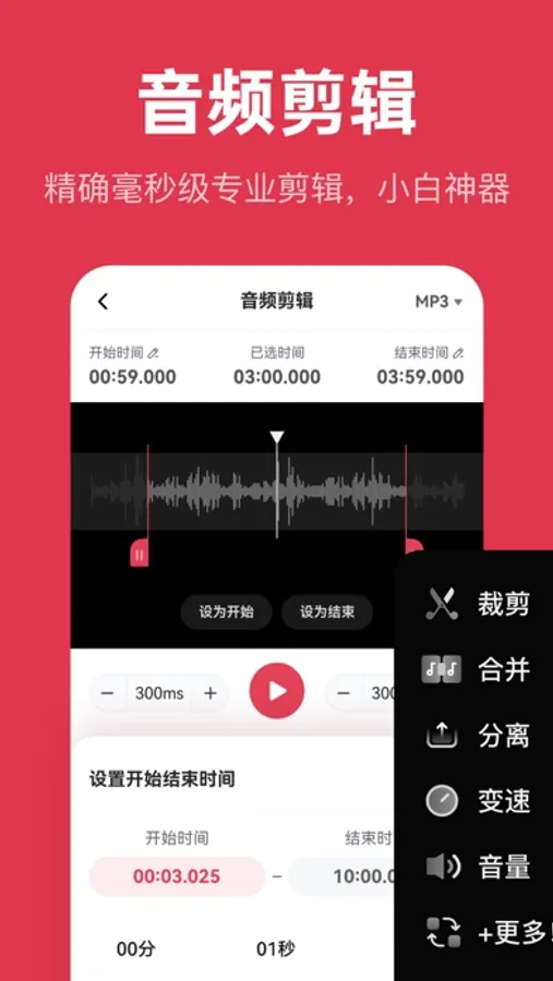 1.音频裁剪:自由地裁剪音频时长,操作简单易上手