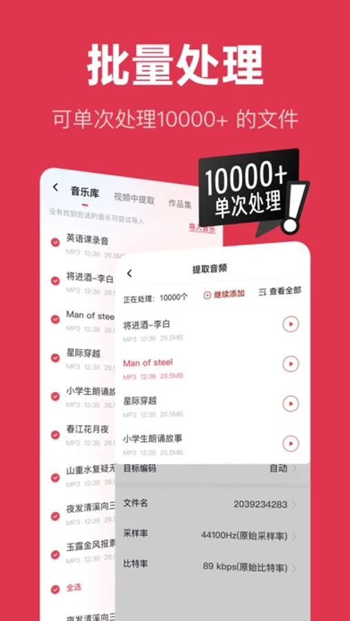 2.提取音频:一键提取视频中的音频部分,多种音频输出格式任意选
