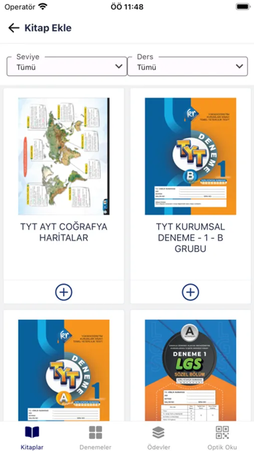 Öğrenciler isterse kitap ekleyip kitaplardaki testlere ve cevaplarına QR veya optik okutmadan da erişebilirler.Optik Form okurken kameranızın temiz olması ve uygun ışık ortamında formun ekranda görünmesi yeterlidir. Kitaplarım sekmesinde Yayınevi'ne ait kitaplar listelenmektedir.