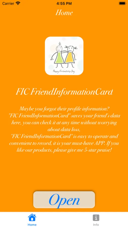 „FIC FriendInformationCard“ ist einfach zu bedienen und bequem aufzuzeichnen, es ist Ihre unverzichtbare APP. Wenn Ihnen unsere Produkte gefallen, loben Sie mich bitte mit 5 Sternen!